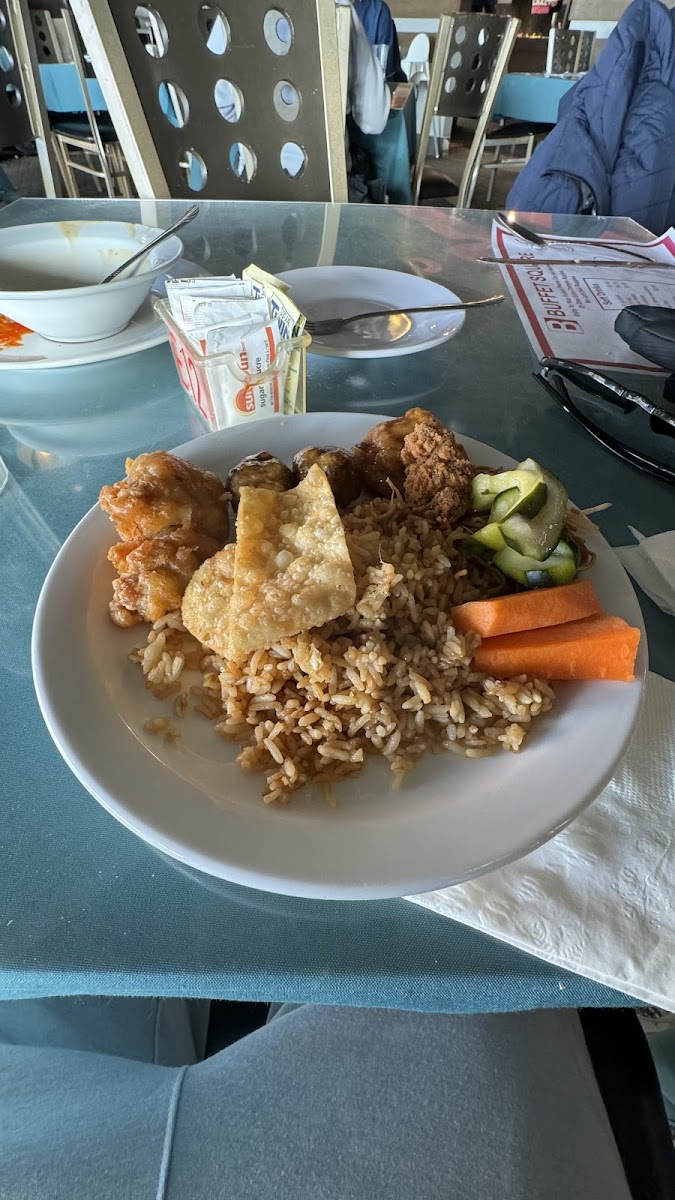 “The buffet is reasonably priced. It offers a variety of dishes, including salads, soups, desserts, and traditional Chinese food. I went at 2 p.m. on Tuesday, and there were few people. If you don't know how to eat, it will be difficult to get a second dish. If you eat a lot of fat and sugary drinks, you won't get past the first dish. 4 adults.”